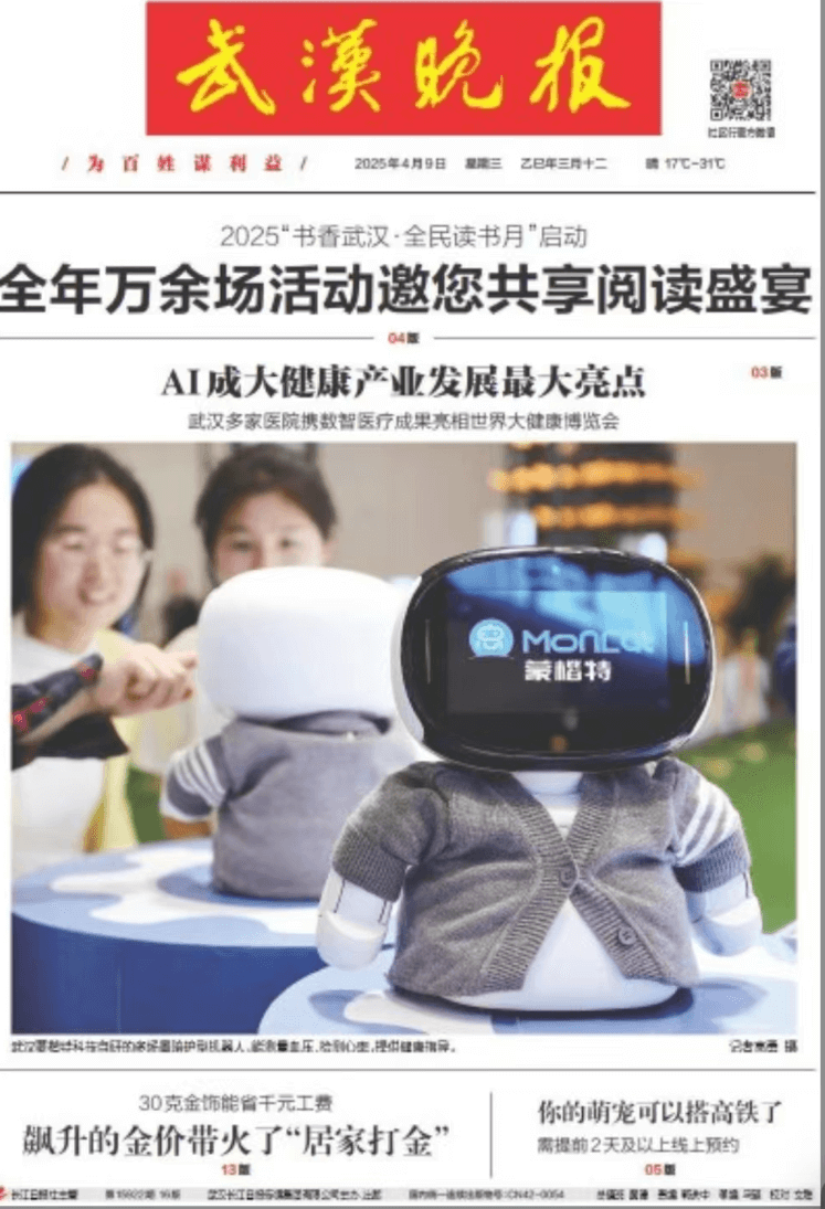 蒙楷特机器人亮相世界大健康博览会,登上《武汉晚报》引发广泛关注!